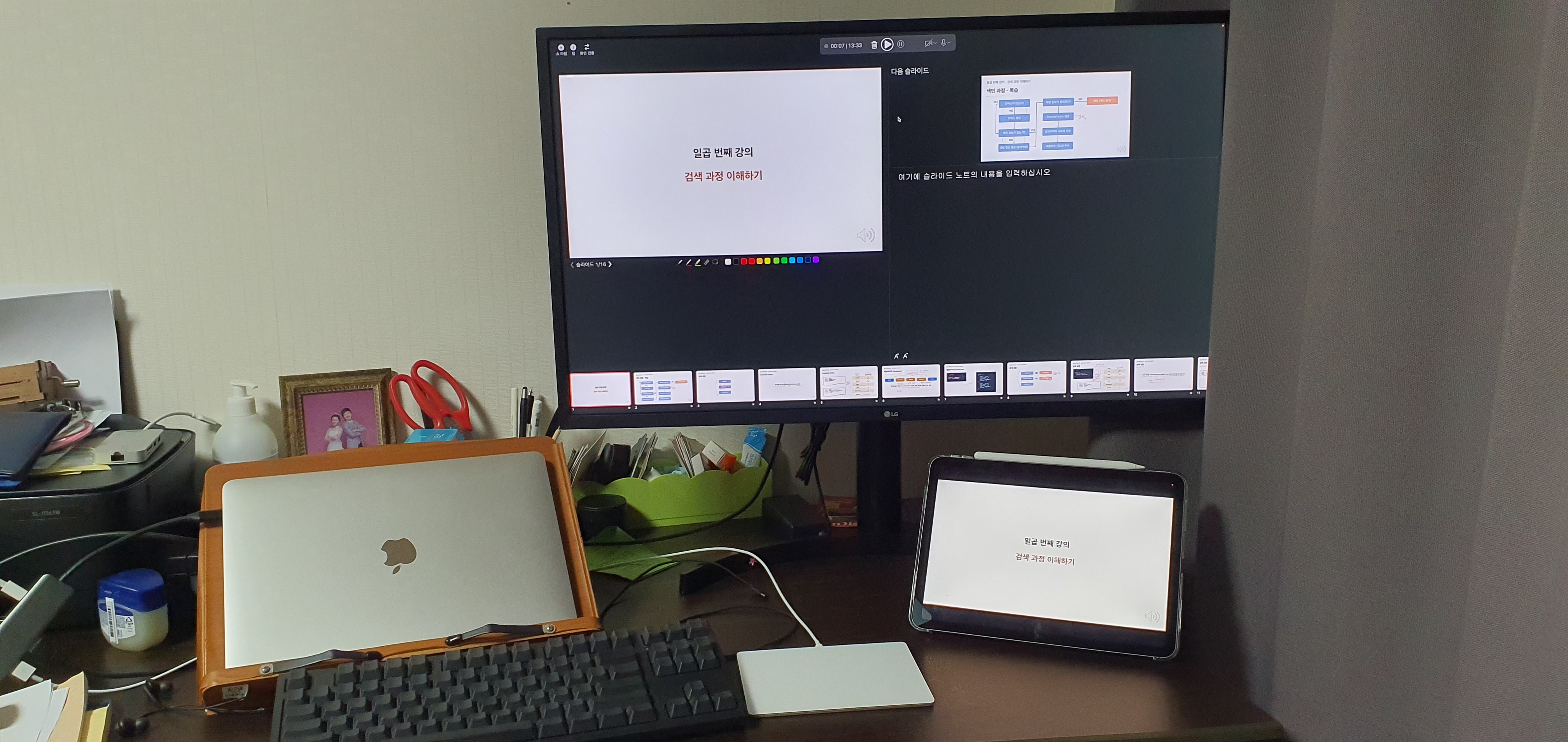 최근 좋은 기회를 얻어서 인프런 강의를 만들게 되었는데요, 생각보다 어렵지 않게 강의를 만들 수 있었습니다. (물론 강의 제작 자체를 이야기하는 것이고 콘텐츠를 만들어 내는 과정은 무척 힘든 시간이었죠. ㅠ_ㅠ) 아마 많은 분들이 동영상 강의를 만들기 위해서는 전문적인 장비나 전문가들이나 쓸법한 편집 프로그램, 전문 스튜디오 등 일상의 도구들로는 만들기 어렵다고 생각하고 계실 겁니다. 실제로 저도 그랬구요. 하지만 이번에 직접 해보니 전문적인 환경이 있다면 더 멋진 강의를 만들 수 있었겠지만 꼭 그렇지 않아도 동영상 강의를 만들 수 있다는 것을 경험했습니다. 그래서 혹시라도 환경 때문에 강의 제작을 망설이는 분이 계시다면 도움이 되었으면 하는 마음으로 글을 써 봤습니다. 강의 스타일이 어떠냐에 다르겠지만..